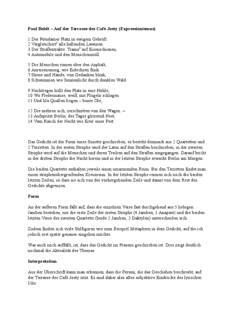 gedichtanalyse auf der terrasse des cafe josty von paul boldt interpretation