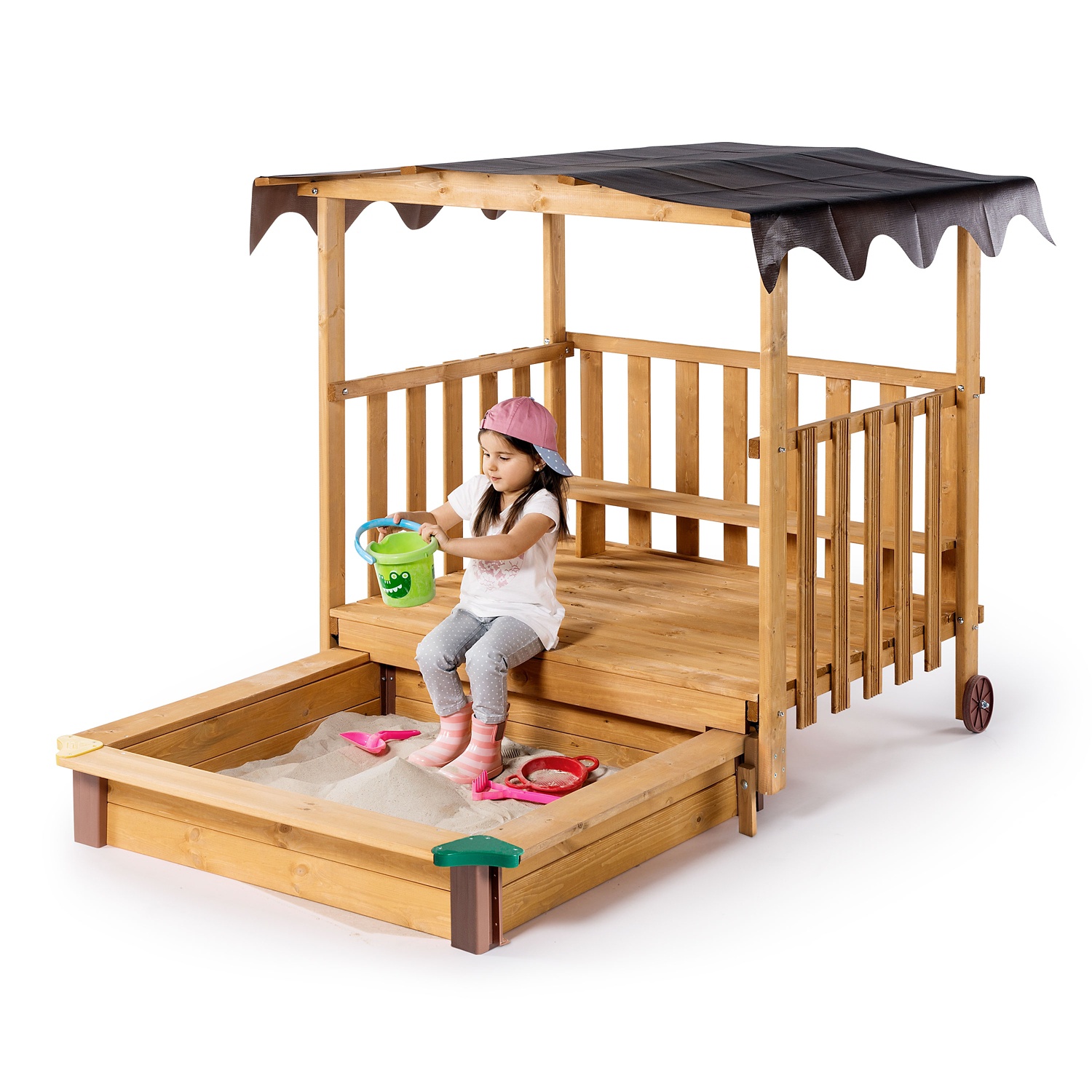 ausziehbarer sandkasten mit uberdachter spielveranda